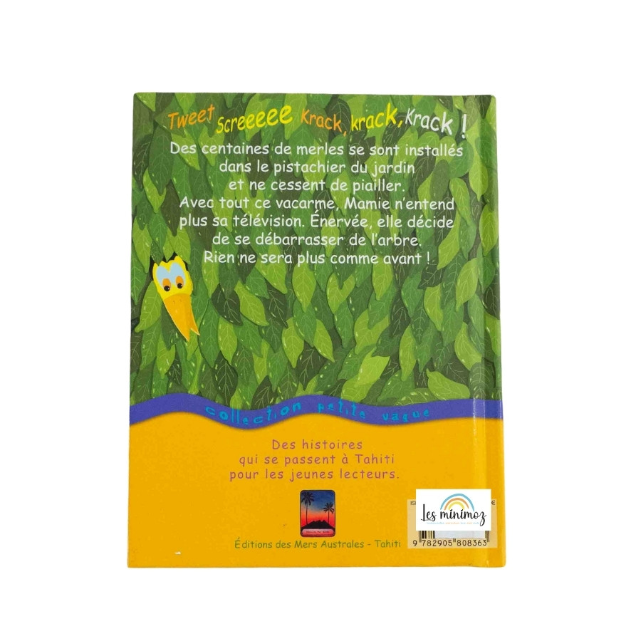 Des centaines de merles se sont installés dans le pistachier du jardin et ne cessent de piailler. Avec tout ce vacarme, Mamie n’entend plus sa télévision. Énervée, elle décide de se débarrasser de l’arbre. Rien ne sera plus comme avant!